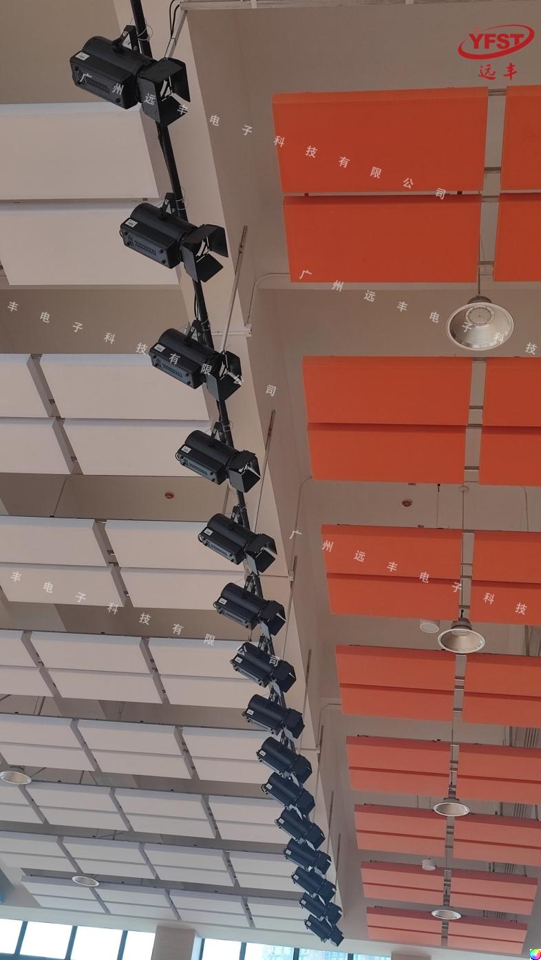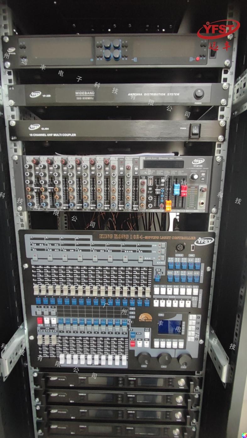 此(cǐ)次音頻燈光設備,包括有:200W LED 聚光燈(YF-143)、18x15W五合一(yī) 帕燈(dēng)(YF-077)、專業音箱(LA-206)、功率放(fàng)大器(YF-CA400)、真分集U段會議係統(tǒng)(YF-614D)、電源時序器(YF-P8A)、音頻處理器(YF-DX48)等(děng)設備。
